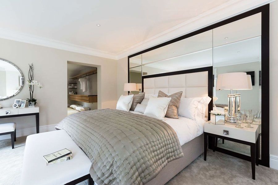 Les armoires basses et les poufs sont sélectionnés pour correspondre au ton du lit. Ils peuvent être sur des pieds forgés, recouverts de velours ou de brocart. Il doit y avoir une table basse, une table basse ou une table basse.