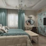 - Caractéristique : Chaque meuble doit se démarquer clairement du contexte général. Motifs géométriques sur papier peint. Des photographies en noir et blanc aux murs. Les compositions de plafond à plusieurs niveaux confèrent ce style. Les meubles doivent être décorés d'ornements. Des tables de chevet et une table basse doivent être présentes dans ce style.