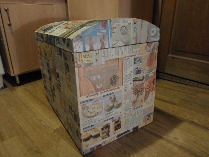 - Une fois le coffre prêt, il doit être décoré. Pour ce faire, vous pouvez utiliser du découpage, du tissu, du papier autocollant ou de la peinture.
