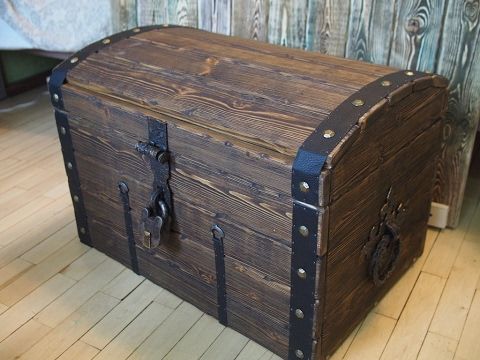 RÉFÉRENCE! Les pirates pillaient le plus souvent les navires qui passaient par là. Parfois, ils avaient de la chance et obtenaient des richesses directement dans les coffres de leurs propriétaires, mais souvent, les trésors qu'ils obtenaient se révélaient dispersés et devaient être placés quelque part pour être transportés ou enterrés dans des endroits secrets, et les pirates devaient faire des coffres directement à bord provenant des restes des navires vaincus. Les coffres de pirates authentiques sont brutaux et stricts, sans décorations inutiles. Leurs principales caractéristiques sont la simplicité de forme et la fiabilité.
